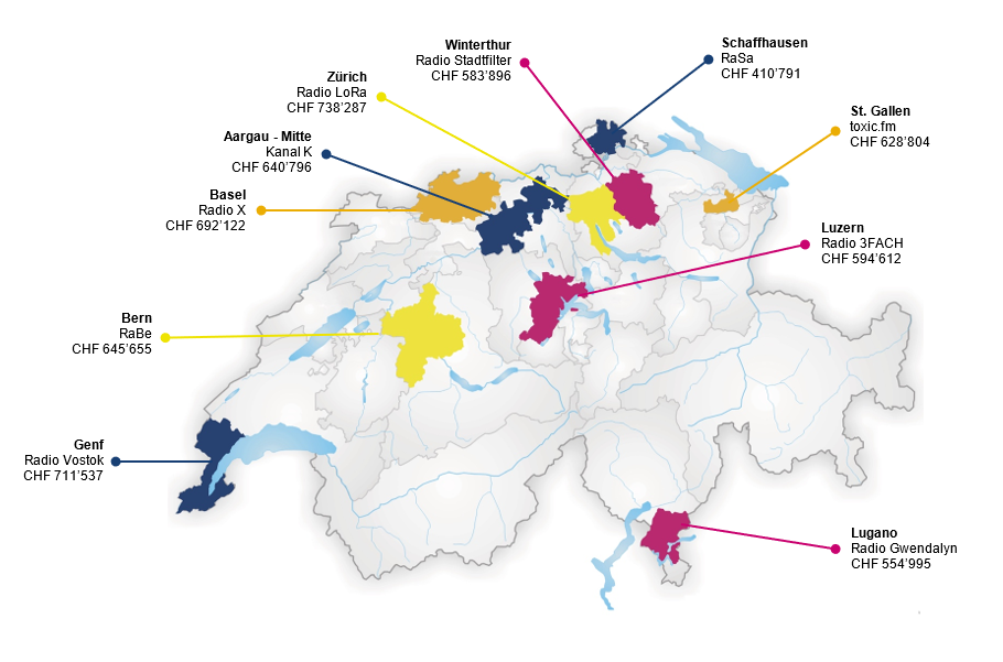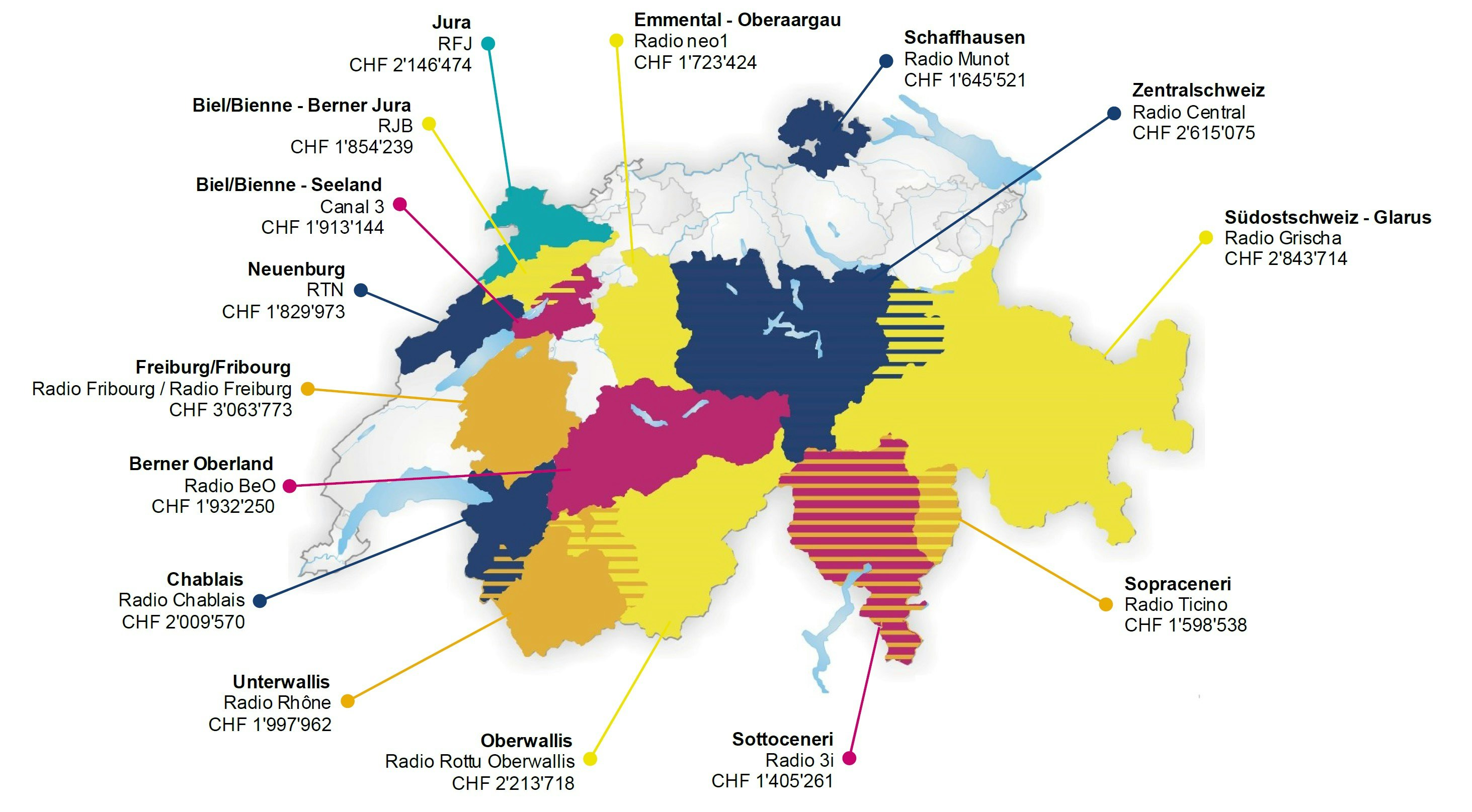Das Eidgenössische Departement für Umwelt, Verkehr, Energie und Kommunikation (UVEK) hat 15 Konzessionen für kommerzielle Lokalradios, zehn für komplementäre nicht gewinnorientierte Lokalradios sowie 13 für Regionalfernsehen erteilt. In einem Grossteil der Versorgungsgebiete haben die aktuellen Konzessionärinnen auch ab 2025 den Zuschlag erhalten. Wechsel gab es im Versorgungsgebiet Genf bei den komplementären nicht gewinnorientierten Lokalradios (heute Radio Cité, neu Radio Vostok) sowie im Regionalfernseh-Versorgungsgebiet Biel/Bienne (heute TeleBielingue, neu Canal B).