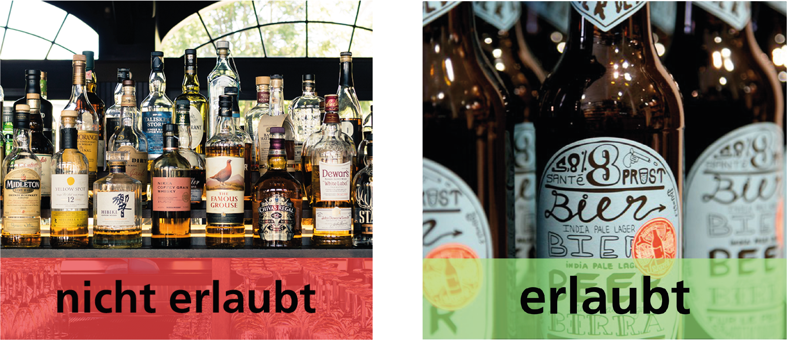 Weder in der Bezeichnung des Sponsors noch im übrigen Teil der Sponsornennung dürfen Elemente genannt oder gezeigt werden, die einem Alkoholwerbeverbot unterstehen. Die Bestimmungen zum Schutz der Jugend sowie der Gesundheit i.S.v. Art. 16 RTVV gelten auch für das Sponsoring (vgl. Alkoholwerbung).