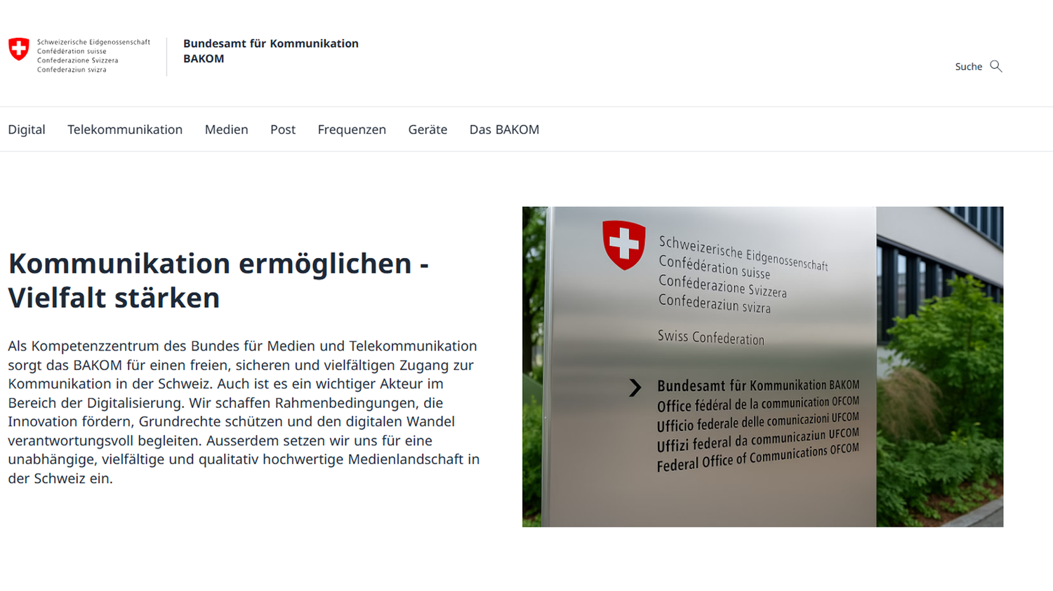 Dal 30 luglio 2025 il sito web dell'Ufficio federale delle comunicazioni (UFCOM) si presenta con un nuovo design più moderno.