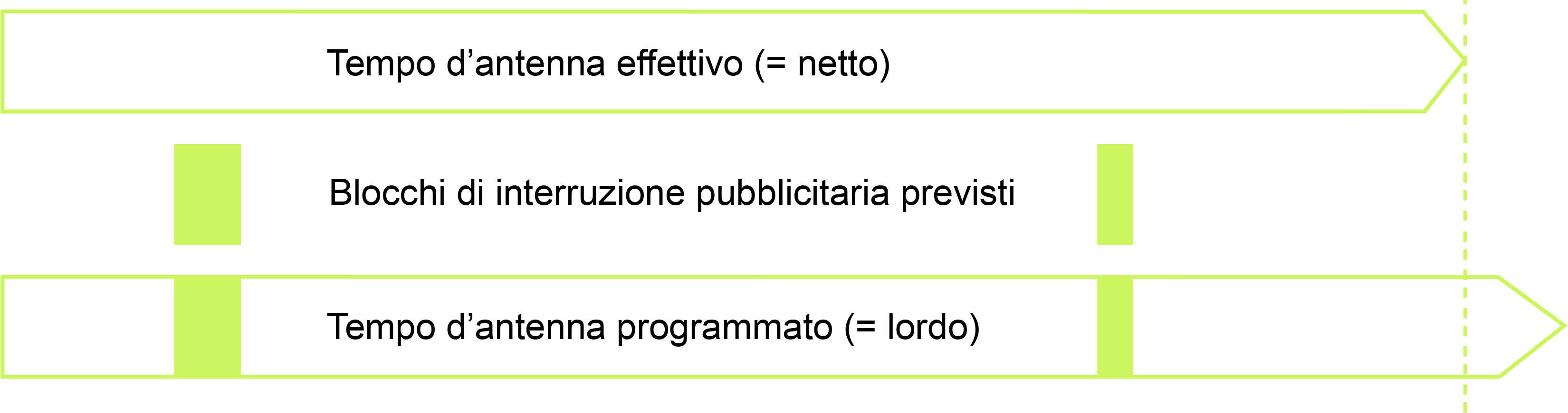 Il principio dell'espressione al lordo (ossia la durata complessiva della trasmissione comprese le interruzioni pubblicitarie) costituisce la base per il calcolo del numero di interruzioni pubblicitarie consentite in una trasmissione.